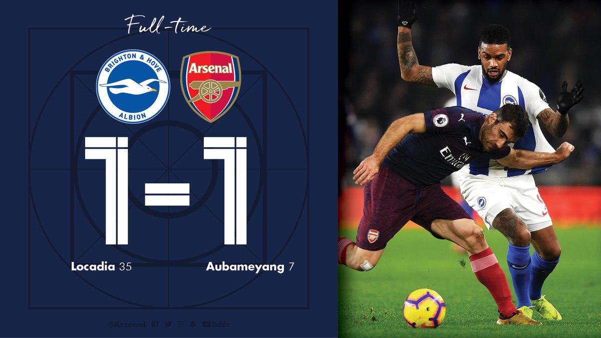 Команда Унаи Эмери забила быстрый гол на 7-й минуте, его автором стал Пьер-Эмерик Обамеянг. Однако далее «Арсенал» продемонстрировал одну из худших игр текущего сезона в плане содержательности атакующих действий. «Брайтон», в свою очередь, проявил терпение и дождался шанса огрызнуться. «Чайки» сравняли счёт на 35-й минуте усилиями Юргена Локадии. Как оказалось, голландский форвард установил финальный счёт поединка, ведь во втором тайме изменений на табло не последовало.