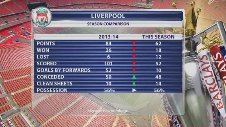 Сравнение показателей "Ливерпуля" в прошлом и нынешнем сезоне