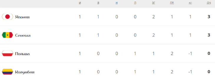 А наиболее сенсационной стала группа «Н», где оба фаворита капитулировали перед аутсайдерами. Сенегал обыграл Польшу, а Япония одержала волевую победу над Колумбией. К слову, в этом матче состоялось первое удаление на турнире, уже на 3-й минуте поединка красную карточку получил игрок колумбийцев Карлос Санчес.