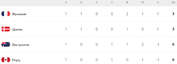 Ожесточенная борьба велась в квартете «С». Франция напоролась на неистовое сопротивление Австралии и только в эндшпиле вырвала победу. Драматический поединок выдали Перу и Дания. Перед свистком на перерыв перуанцы не реализовали пенальти, а в дебюте второго тайма пропустили, как оказалось, решающий мяч.