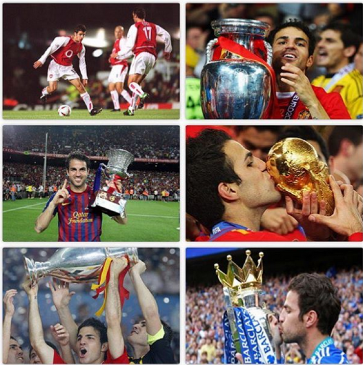 На своей страничке в инстаграме плеймейкер вспомнил о выигранных трофеях в составе молодежной и основной сборных Испании, а так же в «Барселоне» и «Челси». Однако Фабрегас совсем позабыл о Кубке и Суперкубке Англии, которые выиграл, будучи игроком «Арсенала».