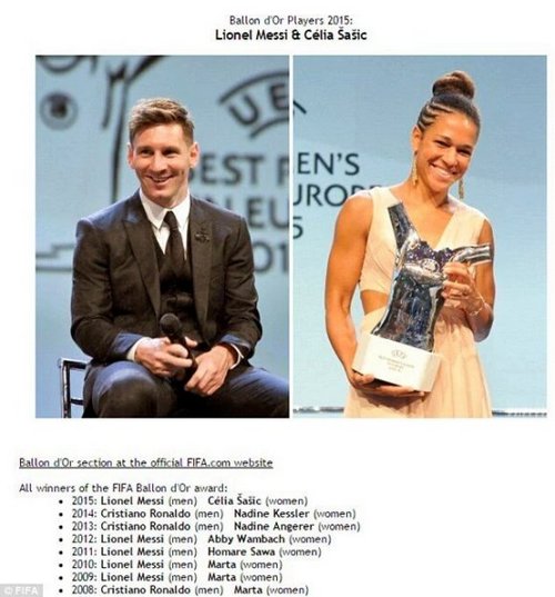 Официальный сайт ФИФА допустил ошибку и, возможно, раскрыл результаты голосования за лучшего футболиста 2015 года.