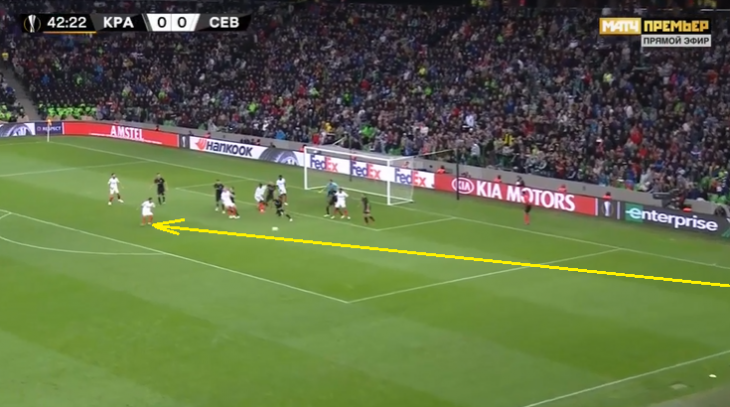 В итоге там еще и помешал Каборе, который помешал Крицюку взять слабенький удар - мяч вильнул в сторону от кипера, хотя не представлял уже никакой опасности. В остальном они допустили еще один опасный момент на первых минутах после кросса и пару моментов - после вылета Севильи в контратаку, но перебили их за счет отличной игры в атаке.
