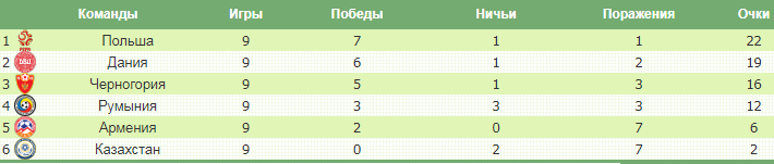 Сборная Польши, которая на 99,9% гарантировала себе выход из группы с первого места, в заключительном матче квалификации примет Черногорию. «Храбрые соколы» имеют в активе 16 очков и еще имеют возможность зацепиться за второе место. Для этого необходимо обыграть поляков и надеяться, что Румыния на выезде одолеет Данию. Сценарий почти нереальный, но в футболе бывает всякое. Интересно, что Черногория еще никогда в истории не побеждала поляков: 2 ничьи и поражение.