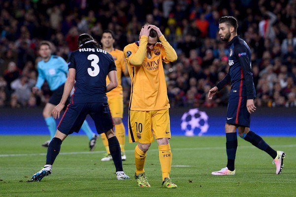 Нападающий «Барселоны» Лионель Месси не отличился забитым мячом в игре 1/4 финала Лиги чемпионов против «Атлетико» (2:1).