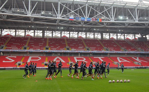 Сборная России сегодня провела тренировку на стадионе «Открытие Арена». Игроки национальной команды готовятся ко встрече со сборной Молдовы в рамках квалификации Евро-2016.
