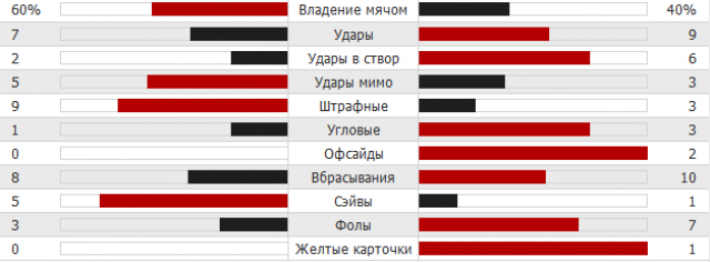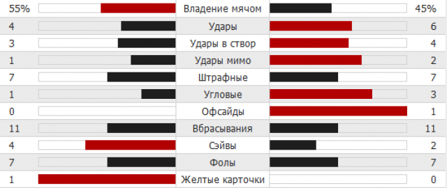 Статистика первого тайма: