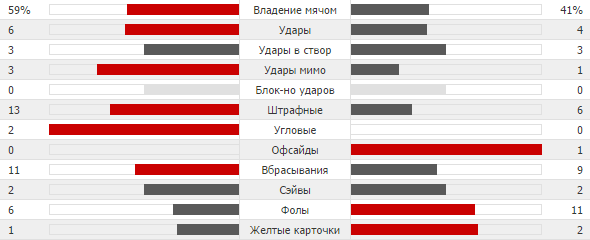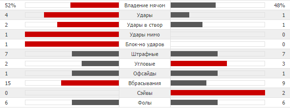 Статистика первого тайма матча «Металлист» – «Трабзонспор»