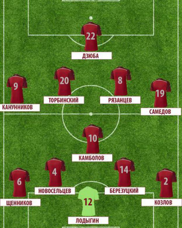 Запасные: Ребров, Набабкин, Макеев, Семёнов, Могилевец, Ефремов, Оздоев, Зобнин, Миранчук, Давыдов, Полоз, Портнягин