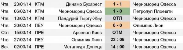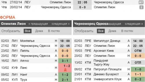 В квалификации этой Лиги Европы «Черноморец» лучше играл дома, а вот на группой стадии, одесситы проиграли два из четырех матчей, а вне родного стадиона еще не проигрывали. Команда Романа Григорчука выиграла важнейший матч у «ПСВ» в гостях и прошла в финальную часть турнира. «Черноморец» отлично умеет играть вторым номером, и в матче против «Лиона» может снова удивить.