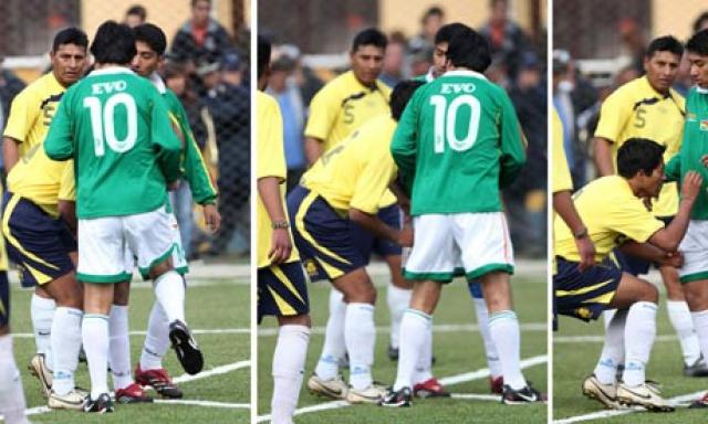 Ранее Эво Моралес уже не раз участвовал во всевозможных товарищеских и благотворительных матчах, а в одном из матчей с участием чиновников, мэров и даже охранников президента Эво ударил в пах одного из участников матча за то, что тот на протяжении всей игры играл очень жёстко против главы государства, после чего потерпевший был... изгнан с поля за то, что сцепился с одним из охранников Моралеса.