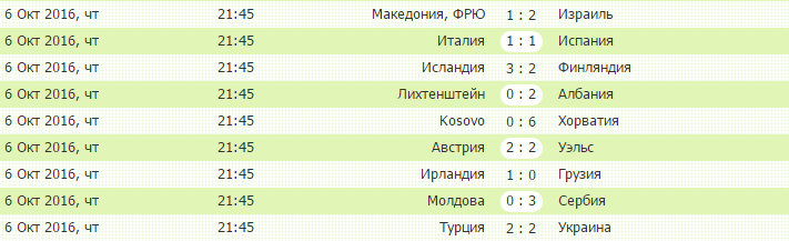 Сегодня возобновились квалификационные матчи к чемпионату мира 2018 года. В борьбу вступили 3 группы «І», «D» и «G». В центральном матче группы «D» Уэльс расписал результативную ничью с Австрией и по дополнительным показателям вышел на первое место. Следом идут сборные Сербии и Ирландии, которые сегодня одержали победы. В группе «G» лидеры Италия и Испания поделили очки. Этим воспользовалась Албания, которая обыграла Лихтенштейн и вышла в единоличные лидеры. В еще одном матче Израиль минимально переиграл Македонию. Не выявили сильнейшего и Украины с Турцией в центральном матче группы «І». Хорватия разгромила Косово и вышла на первое место. Фантастический кам-бэк продемонстрировала сборная Исландии, отыгравшись с 0-2 у Финляндии. Это при том, что 2 гола «островитяне» забили в добавленное арбитром время.