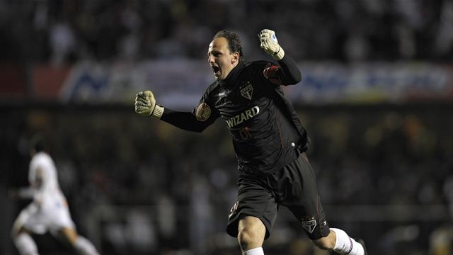 На фото - Рожерио Сени празднует сотый забитый мяч в своей карьере