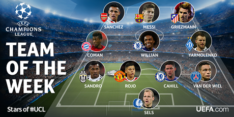 Гризманн, Коман, Ярмоленко, Месси и Виллиан попали в сборную пятого тура группового раунда Лиги Чемпионов.