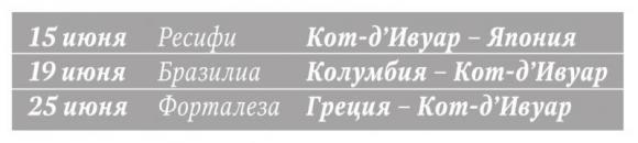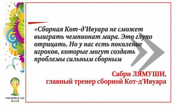 Сейчас командой руководит еще один француз, Сабри Лямуши, который также без особых проблем вывел сборную Кот-д`Ивуара на Чемпионат Мира, что стало третьим подряд участием в мундиалях для команды этой страны. Для Лямуши тренерский опыт в ивуарийской сборной стал первым, а будучи игроком, он выступал за "Осер" и "Парму". На протяжении последнего десятилетия ивуарийская дружина регулярно выставляет на мировые первенства боеспособные коллективы, но откровенно говоря, не везло со жребием - оба раза команда попадала в "группы смерти". Сейчас со жребием более-менее подфартило, да и состав подобрался действительно классный.