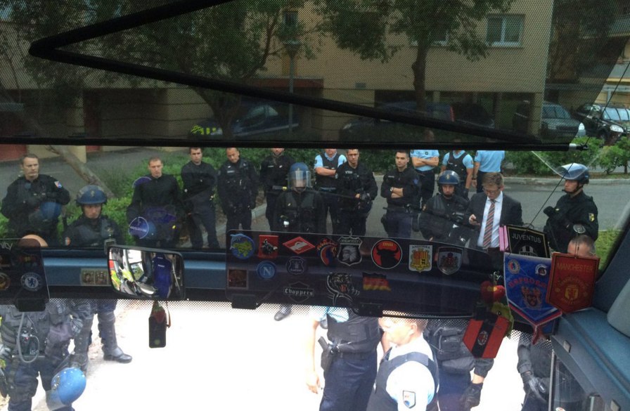 Ранее французский спецназ остановил на подходе к Лиллю автобус с официальной фан-группой российских болельщиков. Один из болельщиков, который вышел из автобуса, получил объявление о депортации.