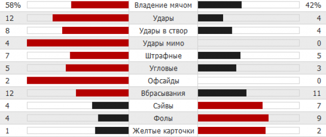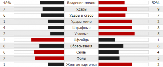 Статистика первого тайма: