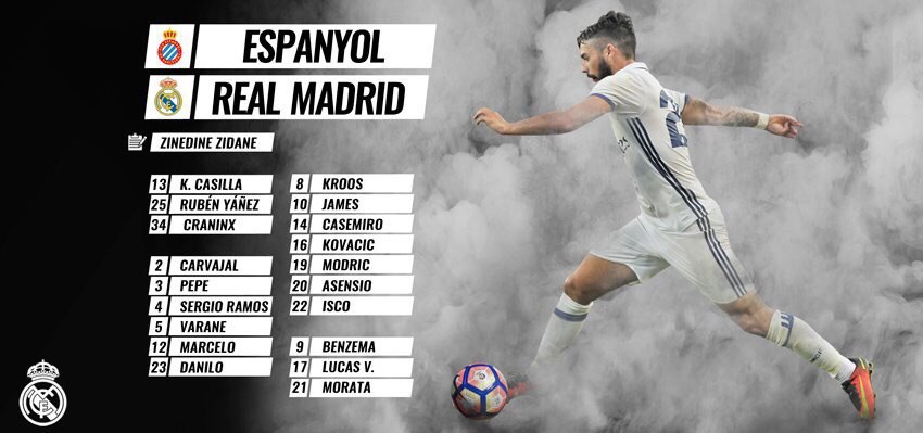 Напомним, посреди недели «Реал» провел матч Лиги Чемпионов против «Спортинга», вырвав победу лишь на последних минутах. В заявку на сегодняшний матч против «Эспаньола» не попали Роналду и Бэйл.